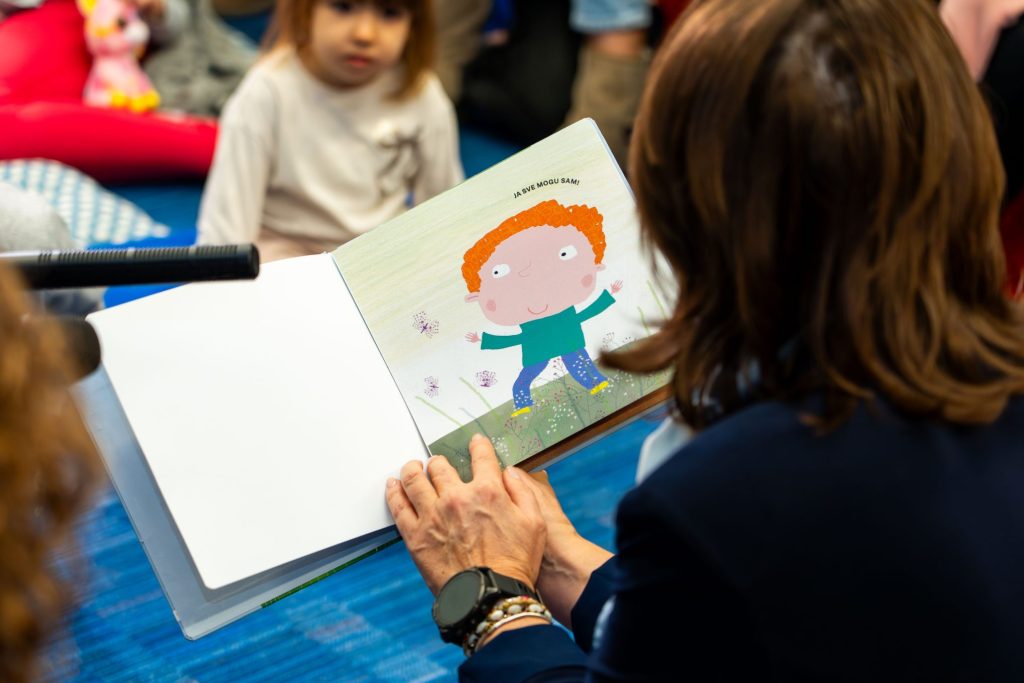 Ministrica Irena Hrstić je podsjetila da čitanje djetetu, osim što potiče razvoj mozga i intelektualne sposobnosti, stvara snažnu emocionalnu povezanost između djeteta i osobe koja čita.